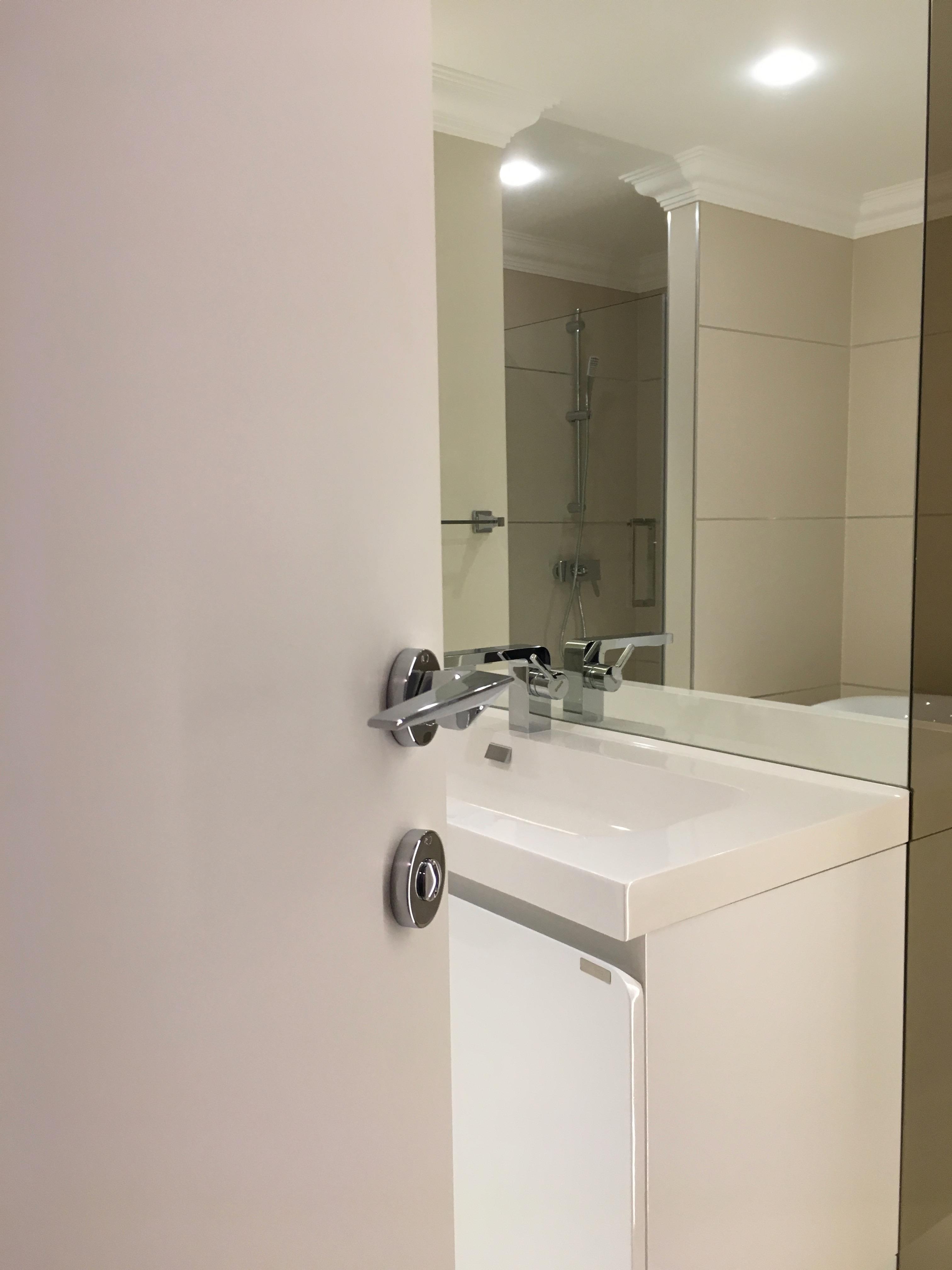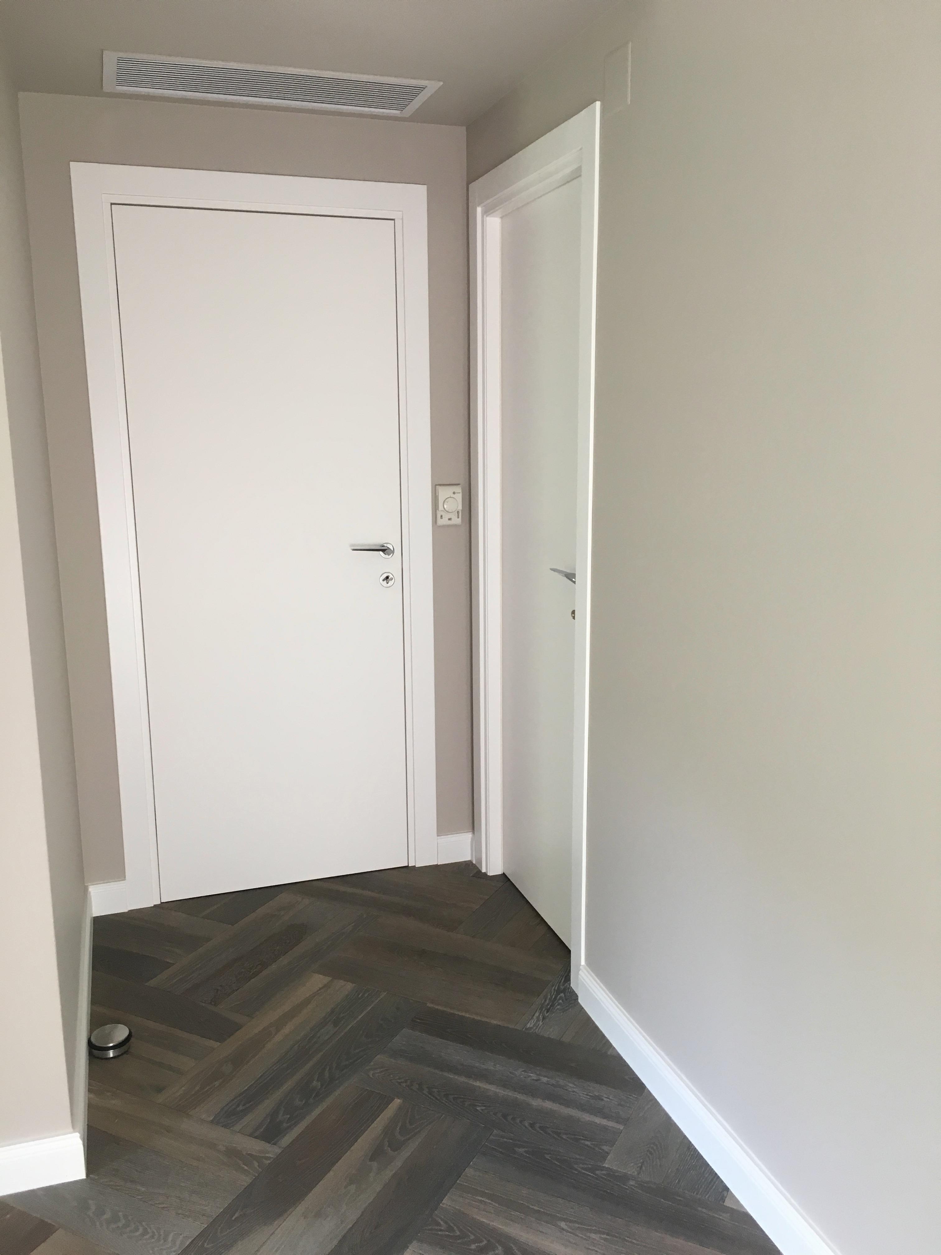 Usi finisate alb mat, cu toc reglabil din lemn stratificat, broasca magnetica si balamale ascunse. LINK DETALII